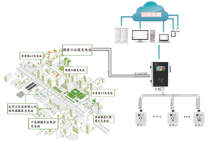 • 充電樁數(shù)量靈活配置(一臺主機(jī)可掛載5~200個充電樁)
